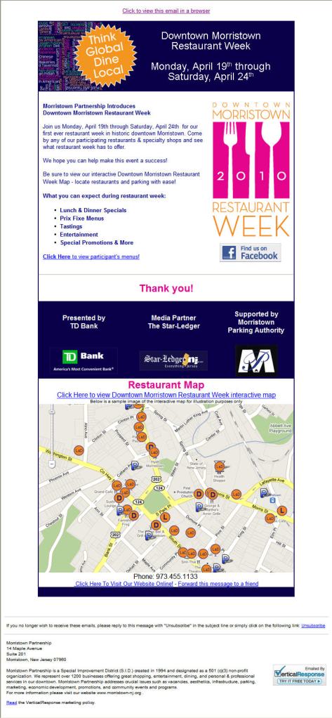 Downtown Morristown Restaurant Week will take place Monday, April 19th through Saturday, April 24th 2010.