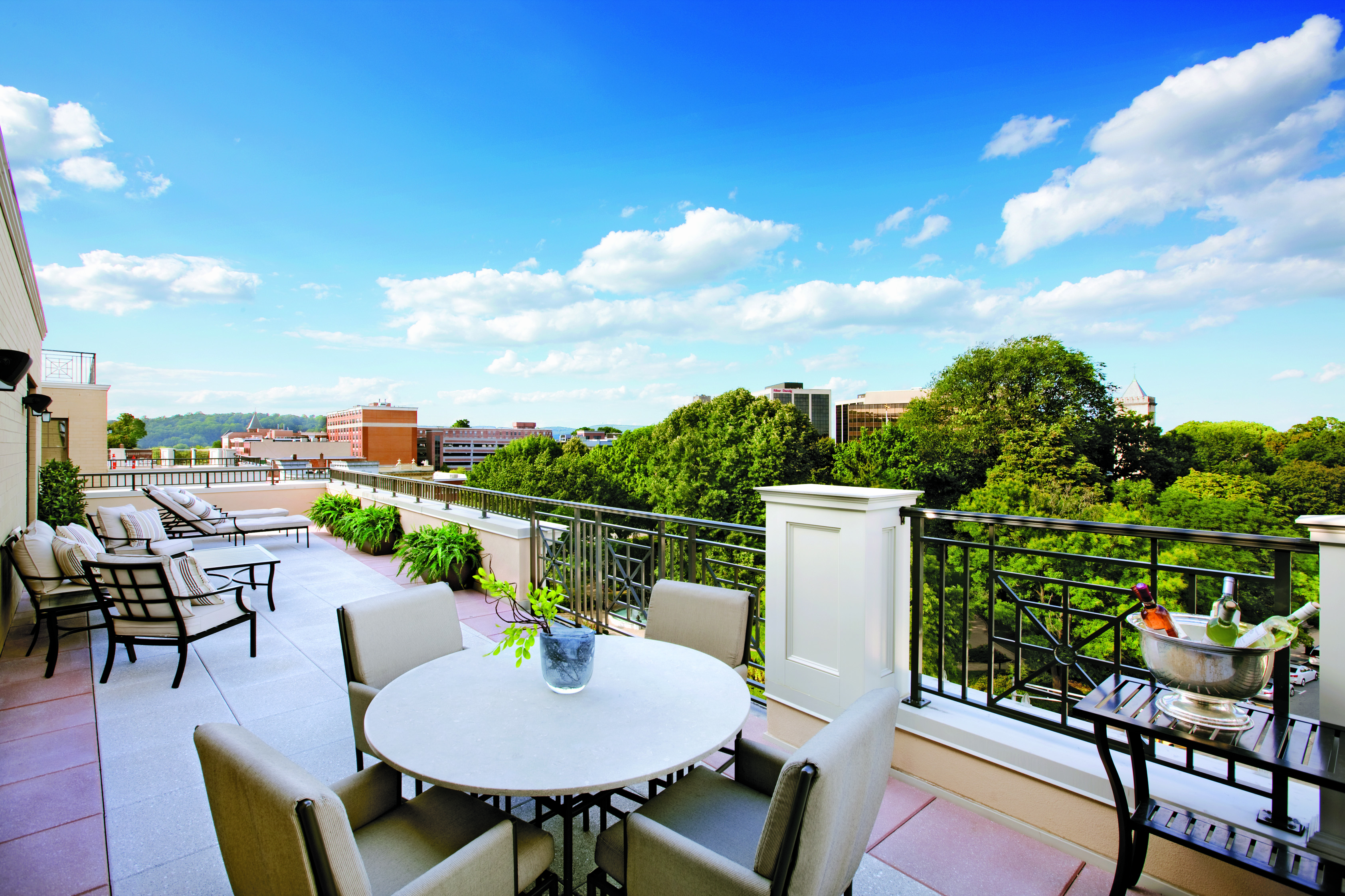 A photo of one of the enormous outdoor terraces Penthouse owners enjoy at 40 ParkOur tipsters on the street tell us a Channel 11 film crew was out in Morristown last weekend filming the 40 Park condominium building on the Green and a number of town hotspots. Apparently, both will be featured on the Metro Residential TV show this Sunday, 10/17, at 7 am. Don’t forget to set your alarm clocks.
