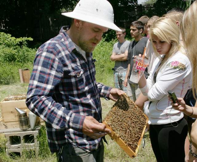 The AP Environmental Science students were learning about beekeeping in a class led by Shaun Ananko, 28, the farm manager of Grow It Green Morristown’s Urban Farm at Lafayette. Bees were first introduced to the garden last year.