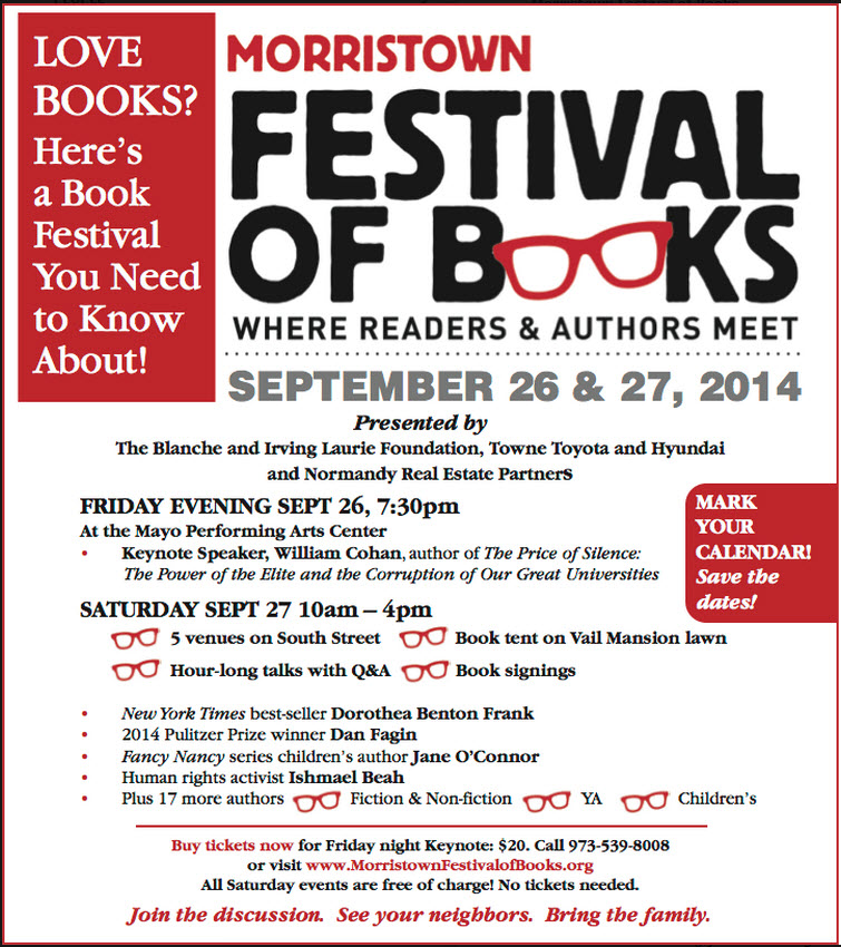 Modeled after successful book festivals in other communities throughout the world, the Morristown Festival of Books brings together acclaimed authors with readers and book lovers.
