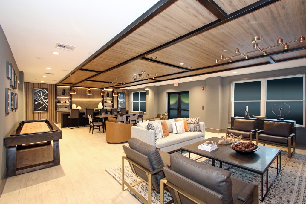 “There’s an open feeling as you enter the building that’s enhanced by the wide hallways,” Mr. Belton said. “There’s trendy decor and furnishings in common areas, carpeted hallways and a modern mail room with the secure Luxor system. We both loved the fitness center with high quality equipment and the courtyard was a big plus for us.”