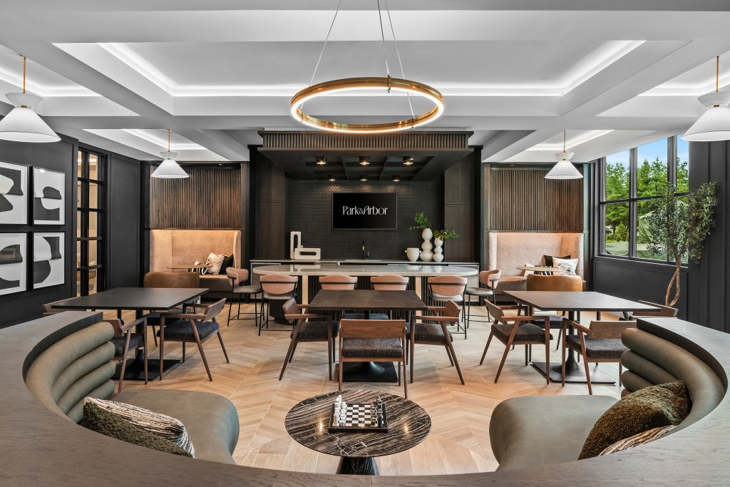 Park & Arbor in Old Tappan, by Hornrock Properties, redefines luxury living with country club-inspired amenities. The 130-home community boasts a stunning double-height lobby and café with a coffee bar perfect for fueling up on brisk fall mornings. The fun continues in the clubroom/speakeasy, where you can enjoy a drink at the bar, play billiards, or try out the arcade games. Fitness buffs will appreciate the modern fitness center with Echelon bikes and a CrossFit studio. Families, pets, and foodies are covered with a children’s playroom, pet spa, BBQ areas, fire pits, and outdoor lounge spaces. With visually stunning one-, two-, and three-bedroom residences, Park & Arbor brings style to every season.